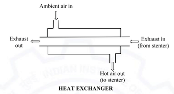 A counter-flow heat exchanger is attached to a stenter for waste heat recovery.