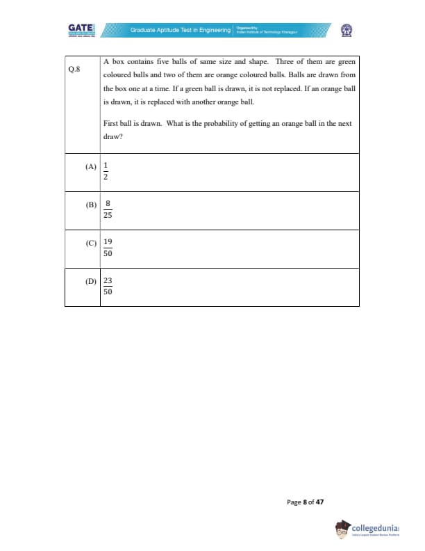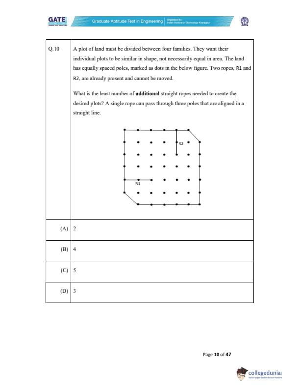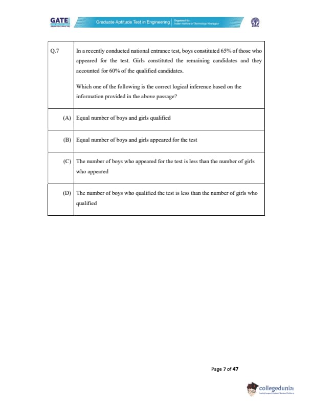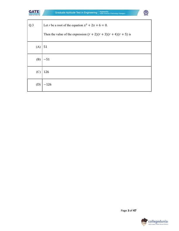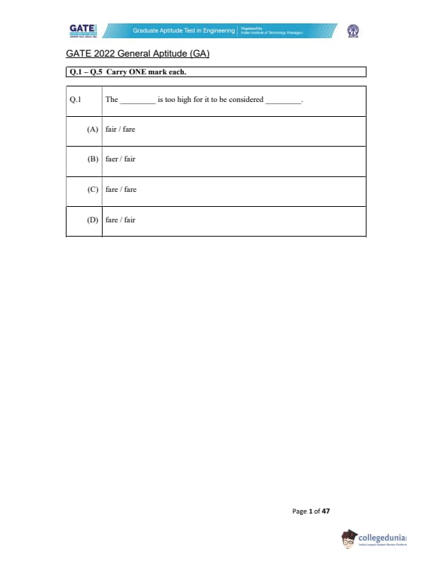 The question paper was a combination of MCQs (Multiple Choice Questions), MSQs (Multiple Select Questions), and NATs (Numerical Answer Type) questions. Each question carried either 1 or 2 marks. Refer to the below-mentioned table to get details of the questions as per the carried marks-