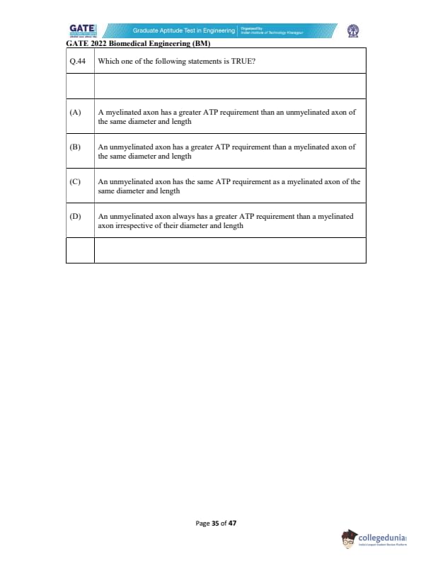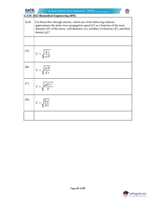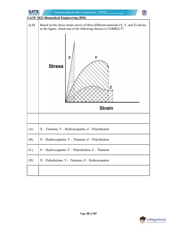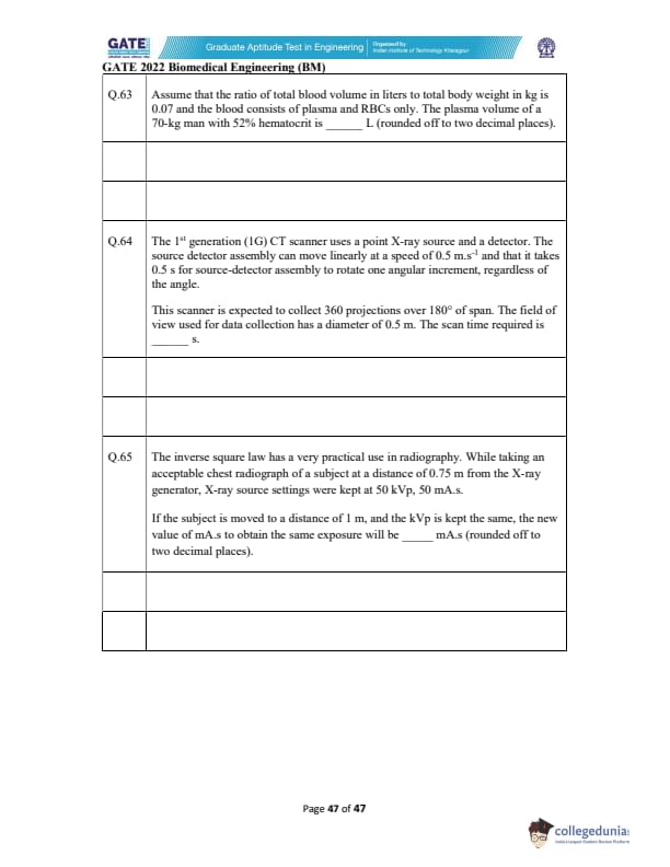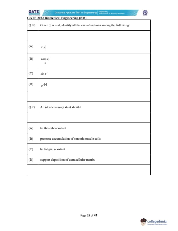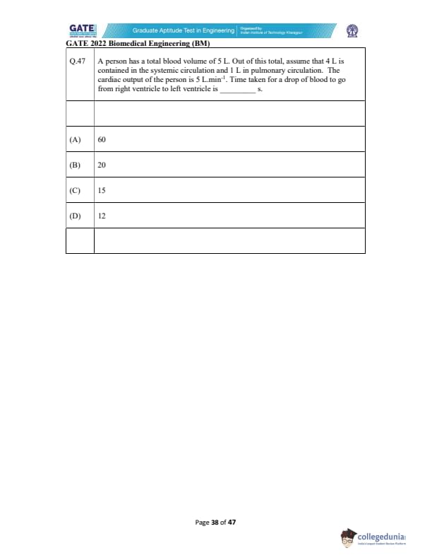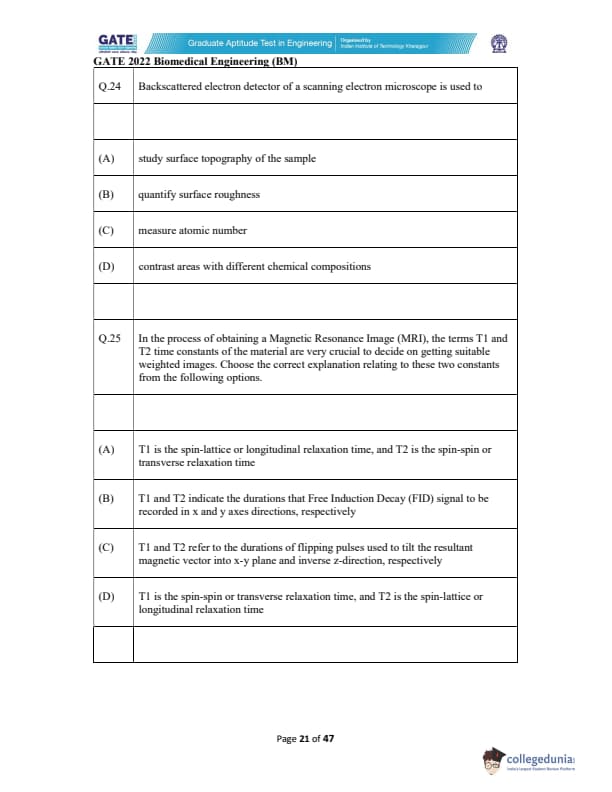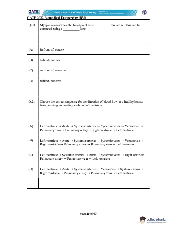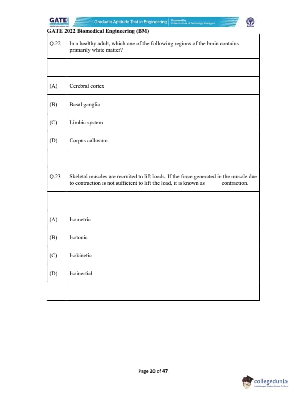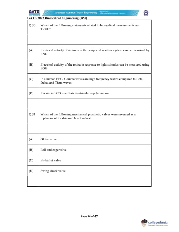 | GATE 2022 Biomedical Engineering (BM) Question Paper | Check Solutions |