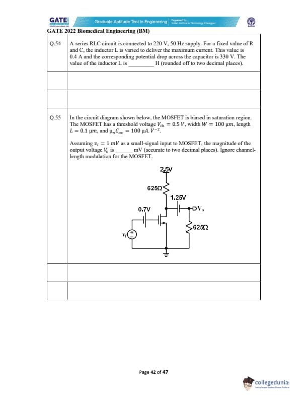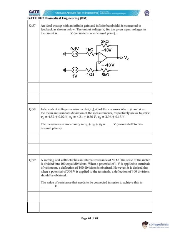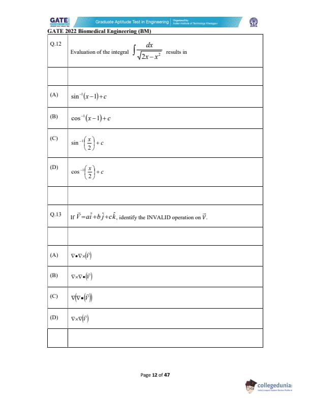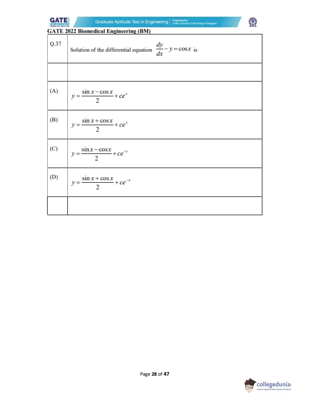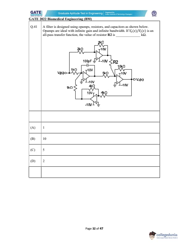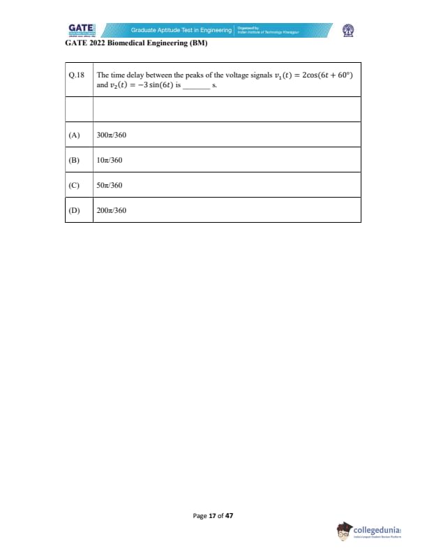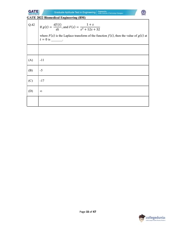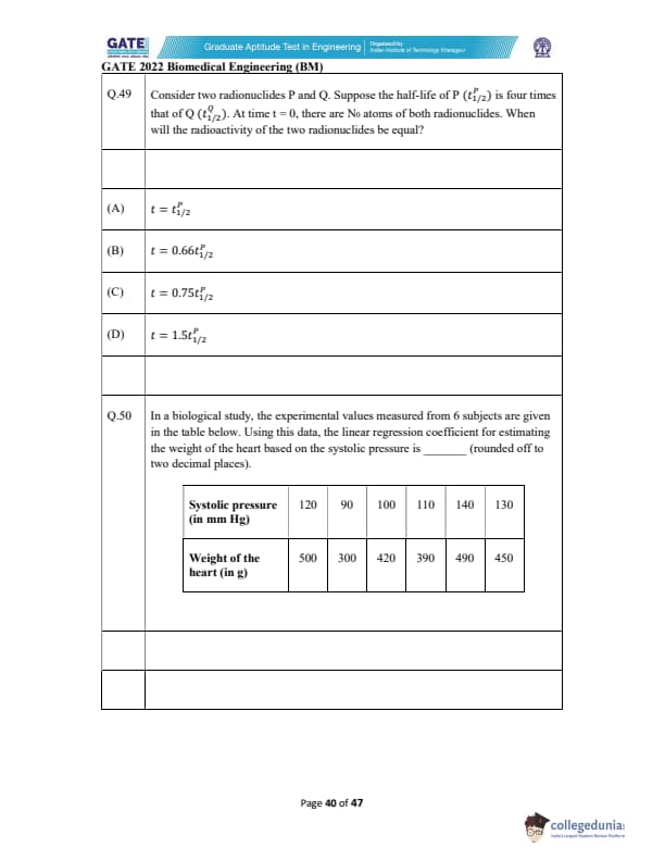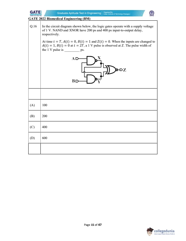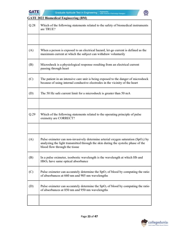 | GATE 2022 Biomedical Engineering (BM) Question Paper | Check Solutions |