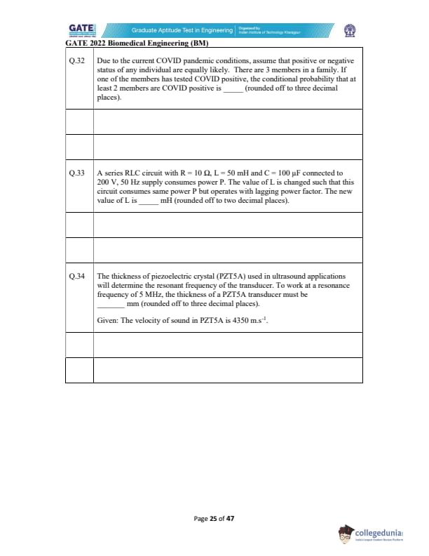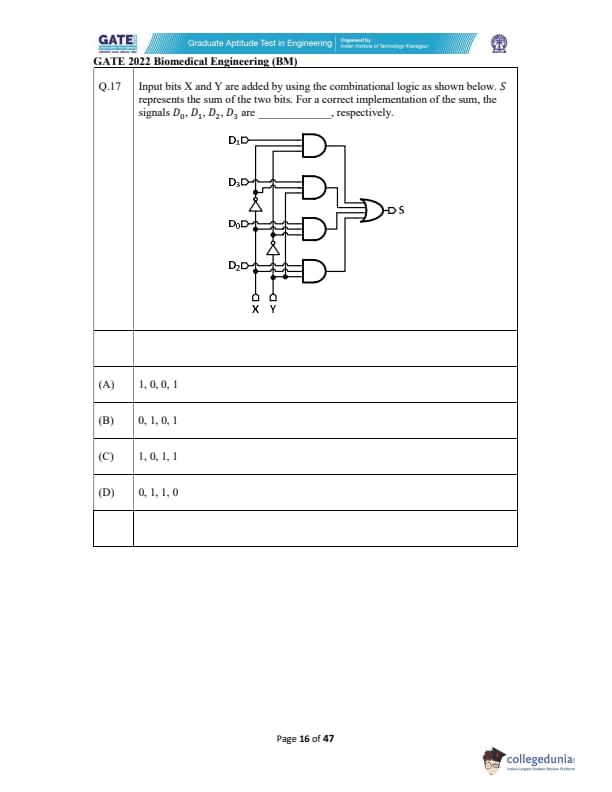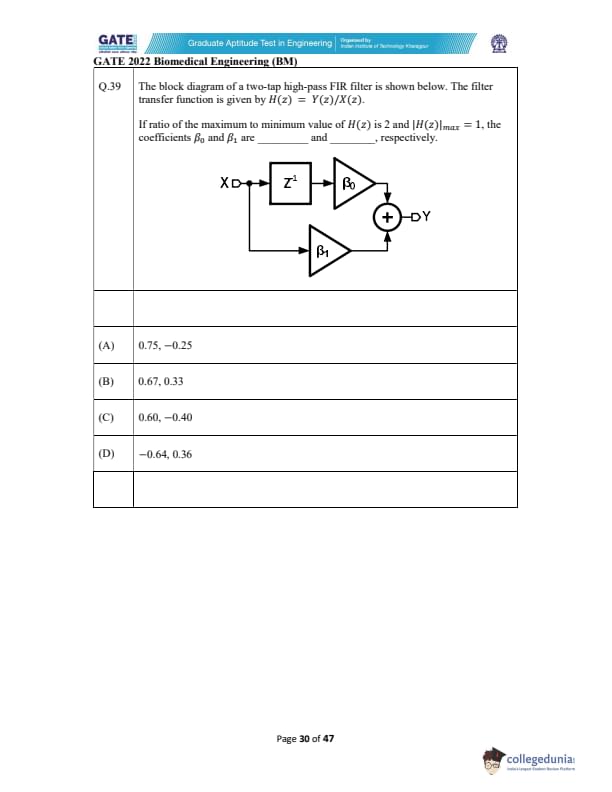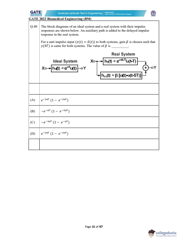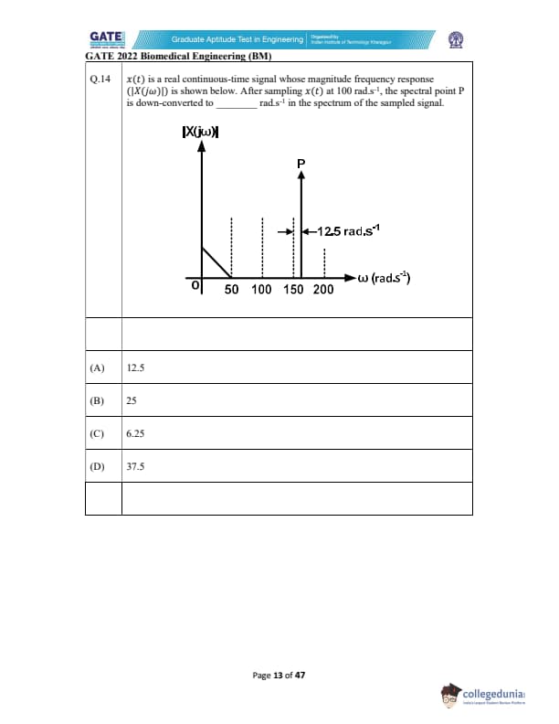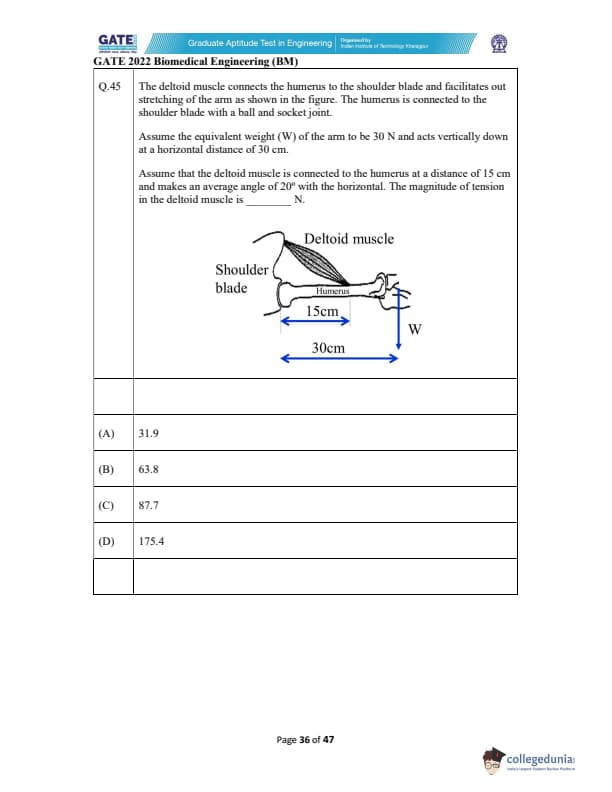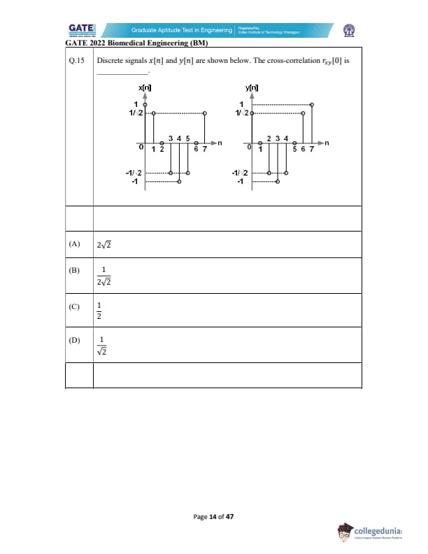 GATE 2022 Biomedical Engineering (BM) Question Paper with