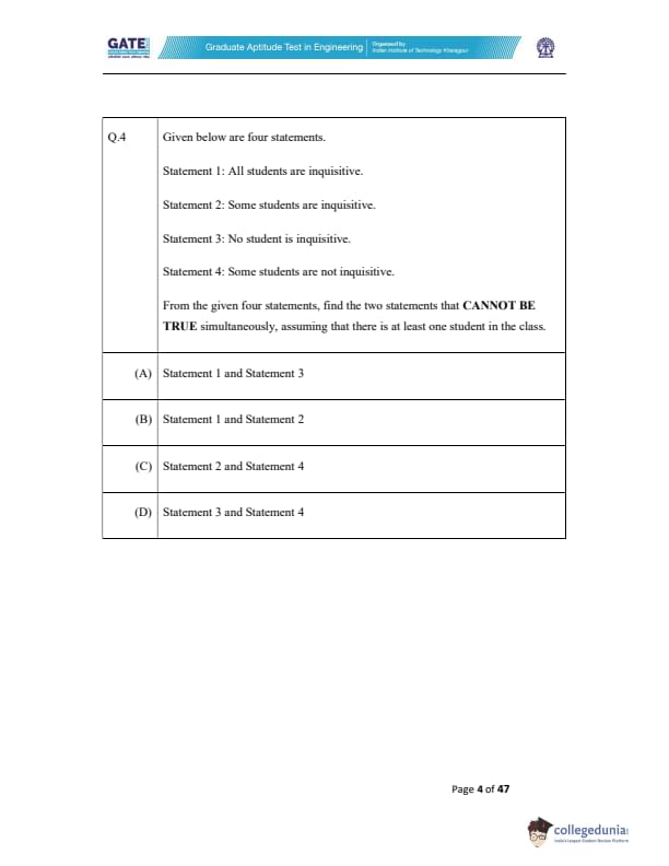 - Statement 4: Some students are not inquisitive.