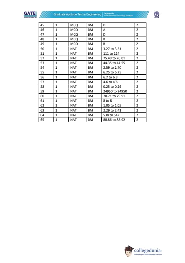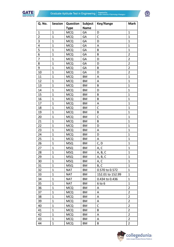GATE 2022 BM Paper Analysis