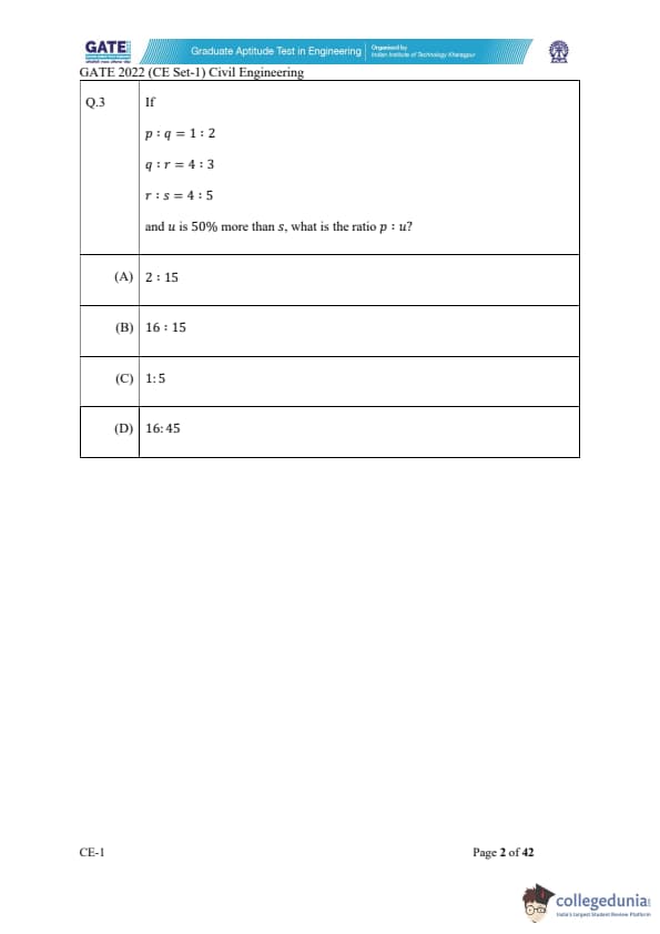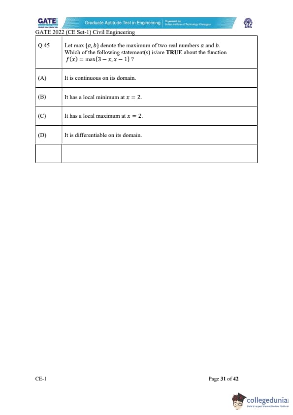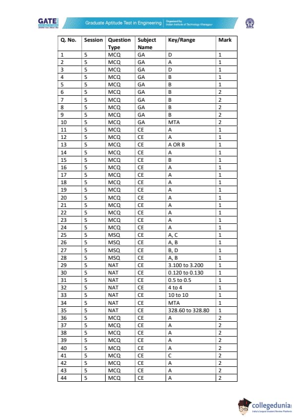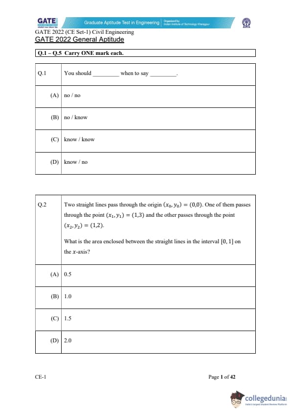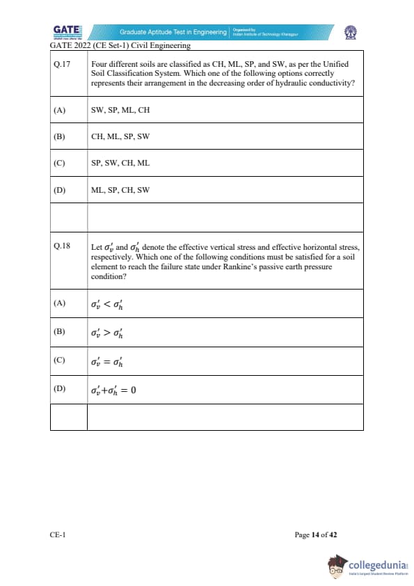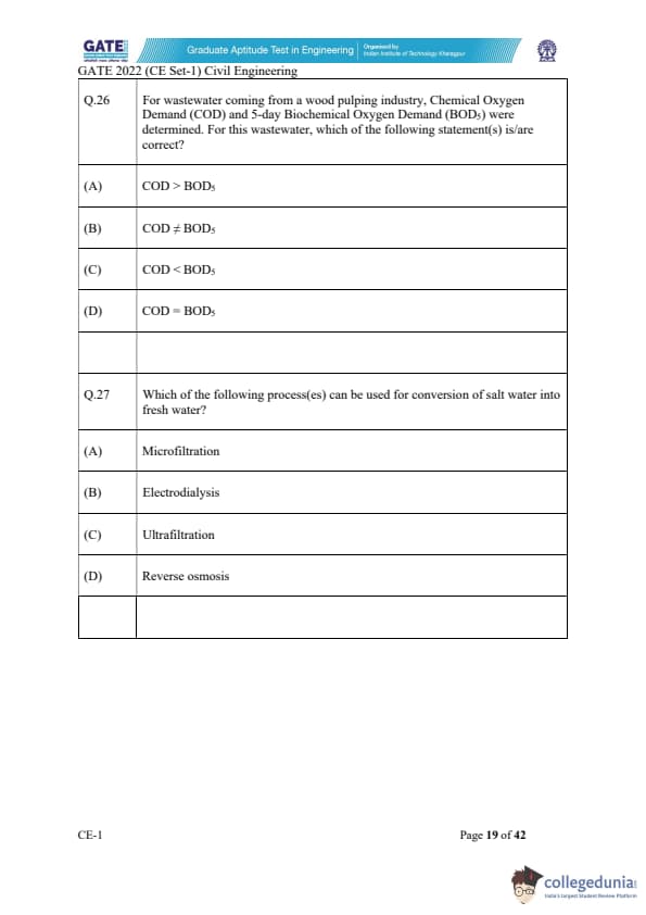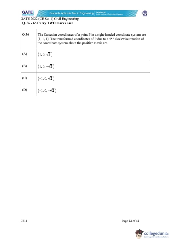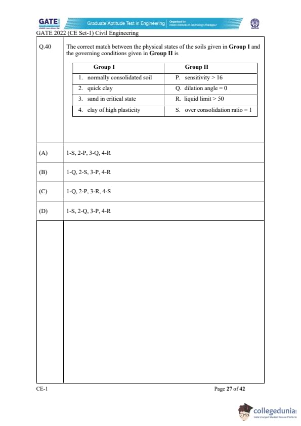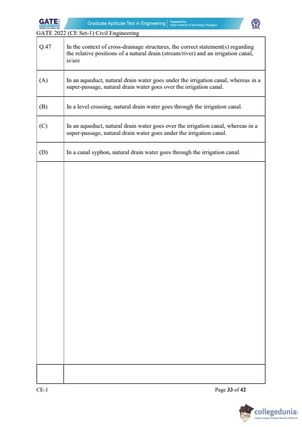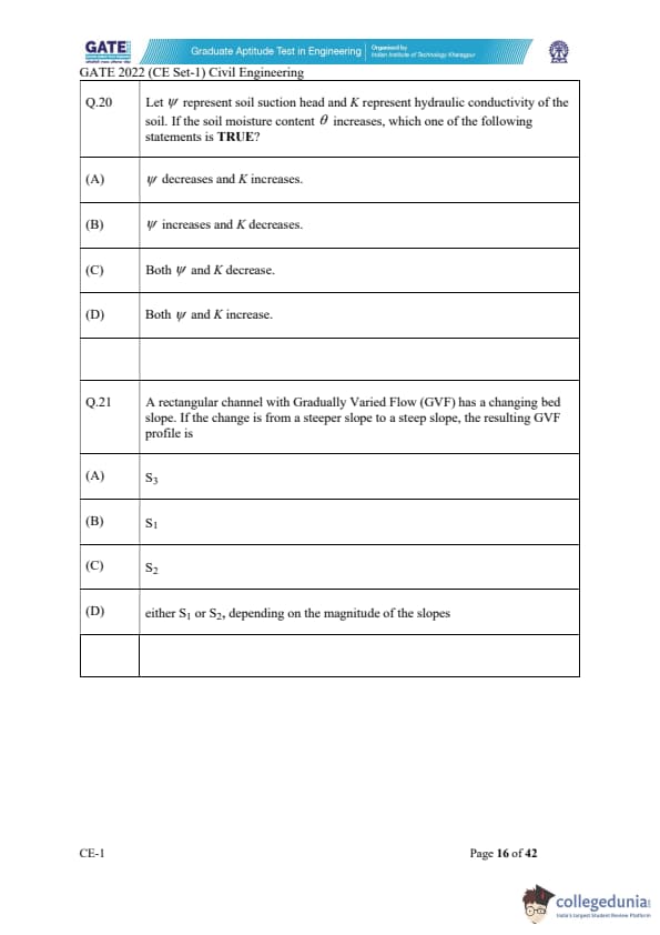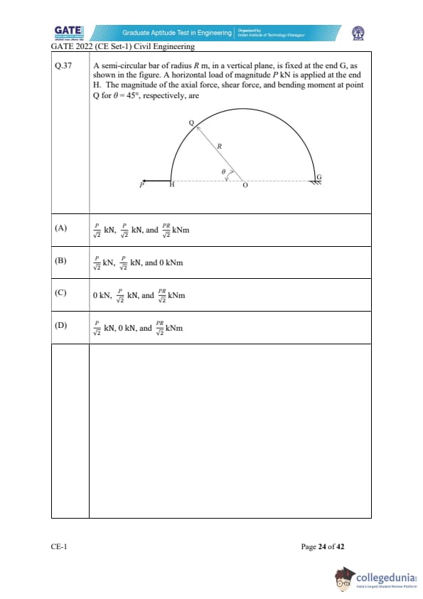 | GATE 2022 Civil Engineering (CE) Slot-1 Question Paper | Check Solutions |