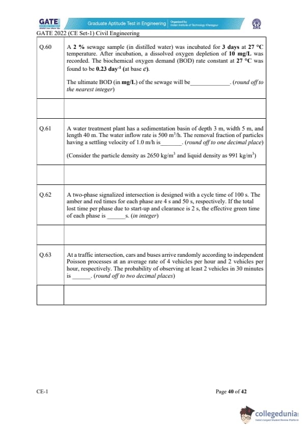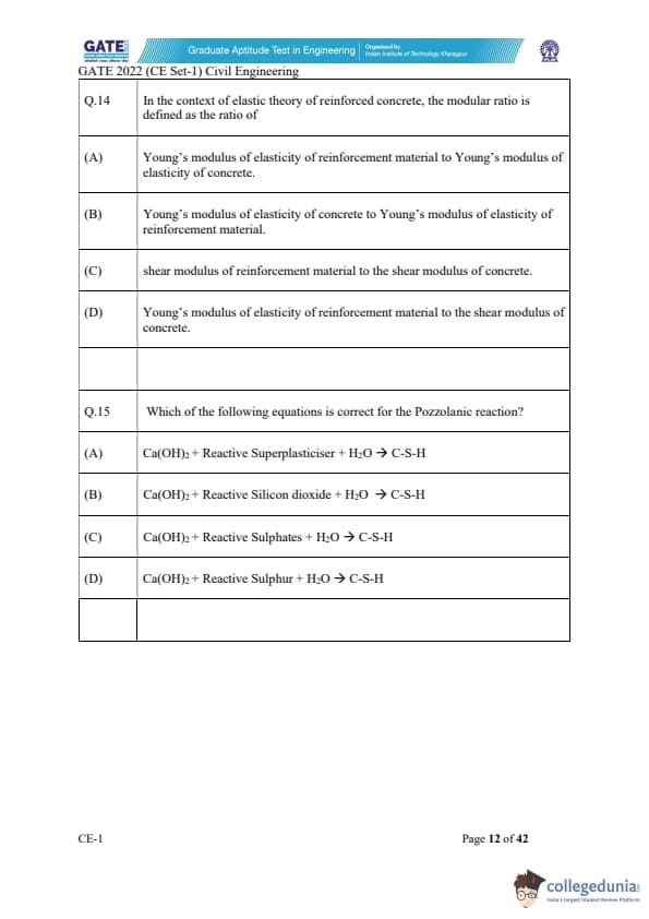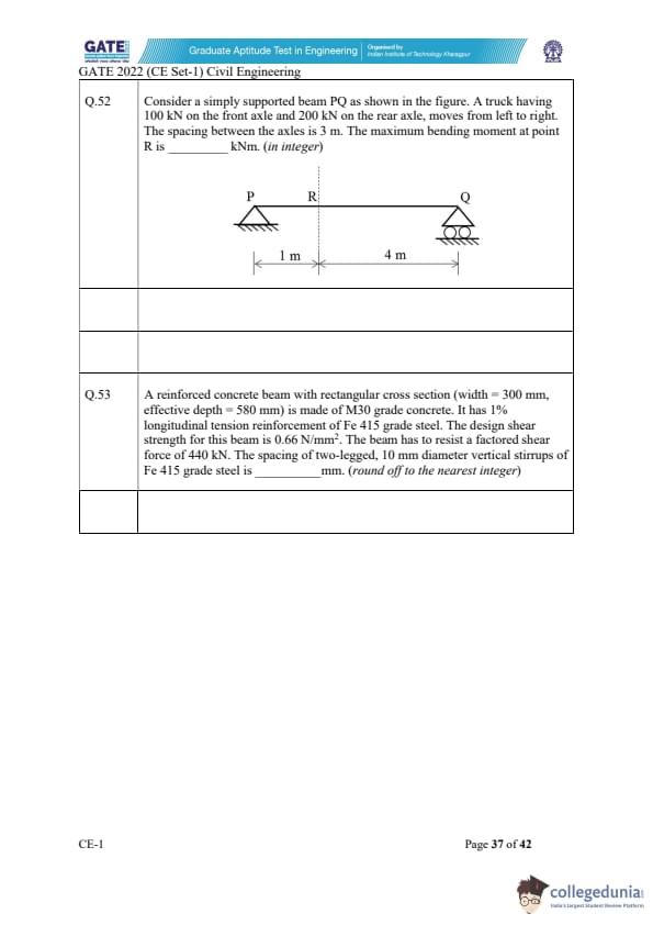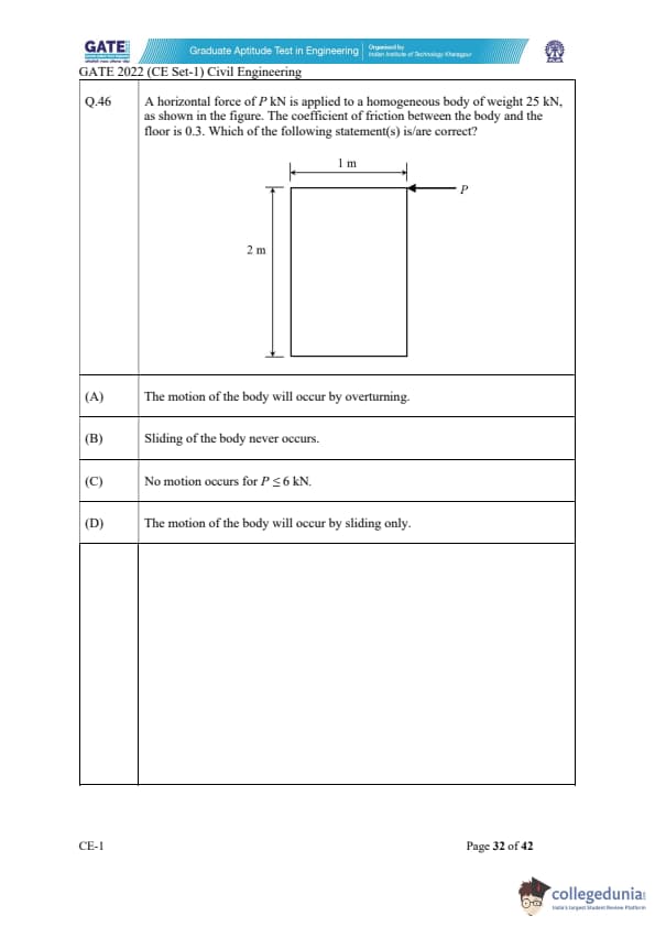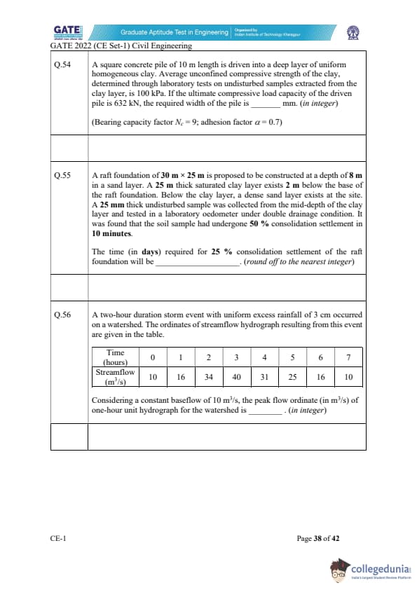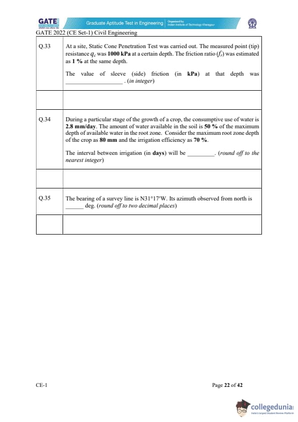 GATE 2022 Civil Engineering (CE) Slot-1 Question Paper with Solutions