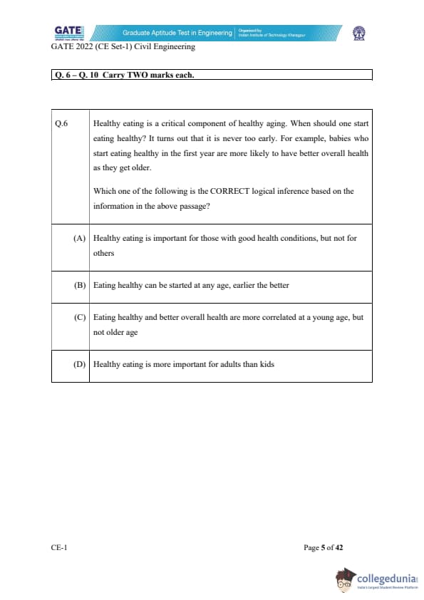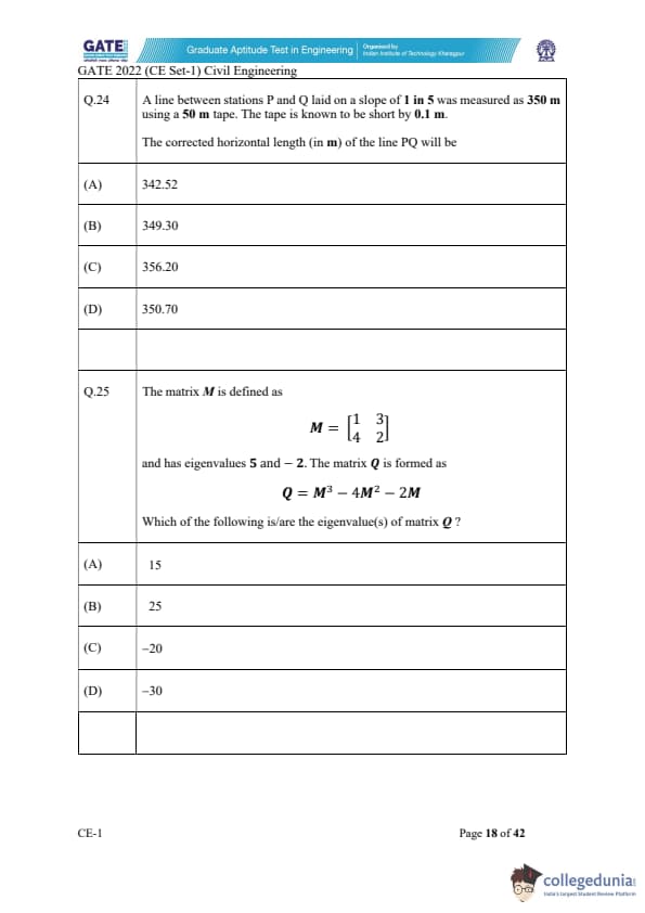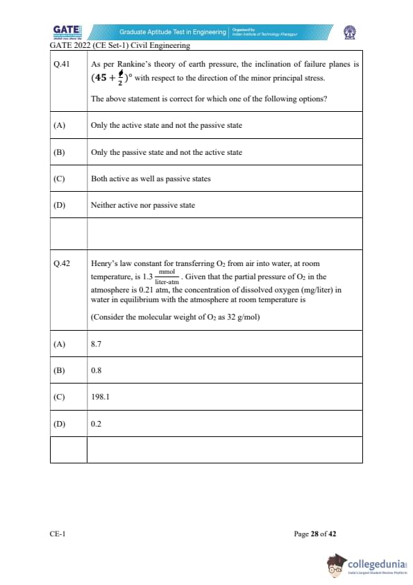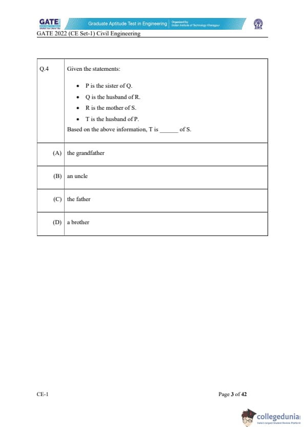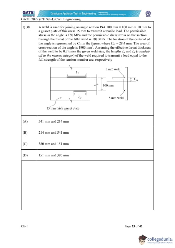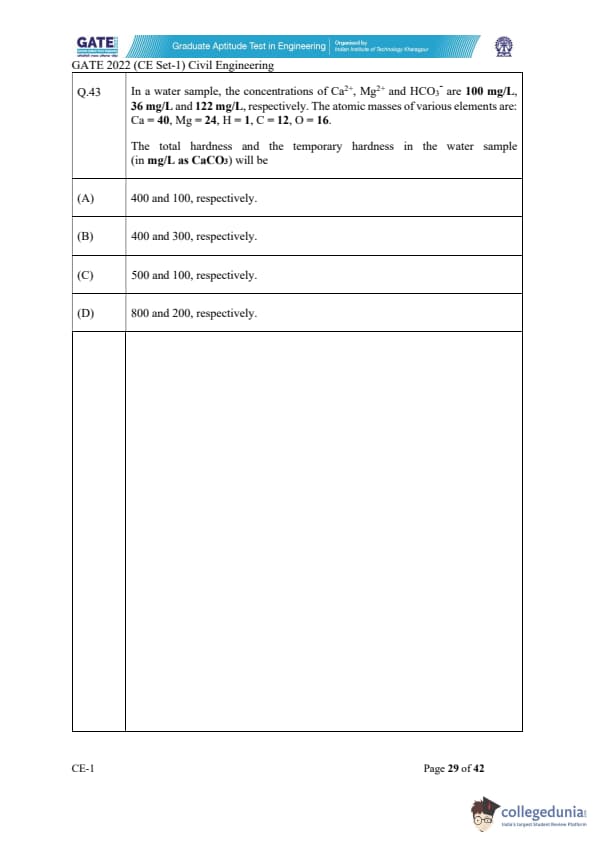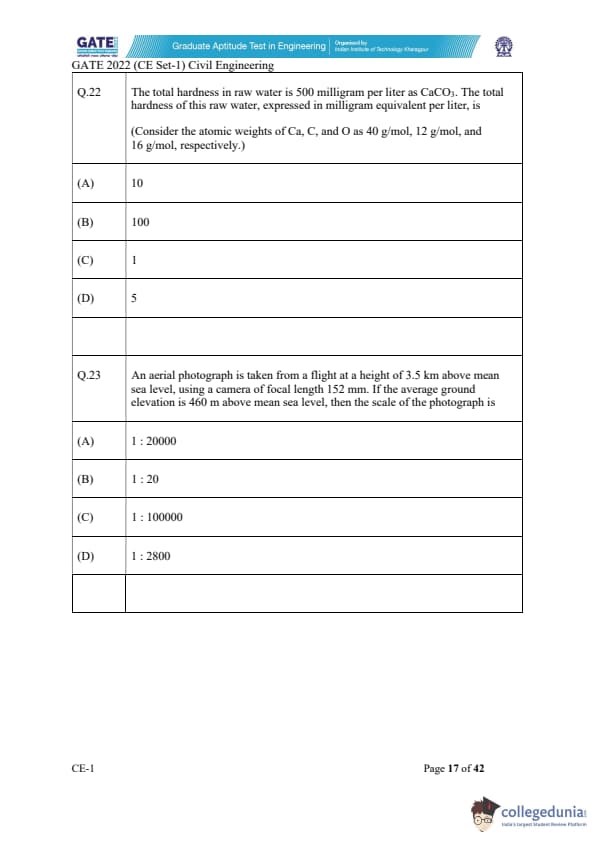 GATE 2022 Civil Engineering (CE) Slot-1 Question Paper with Solutions
