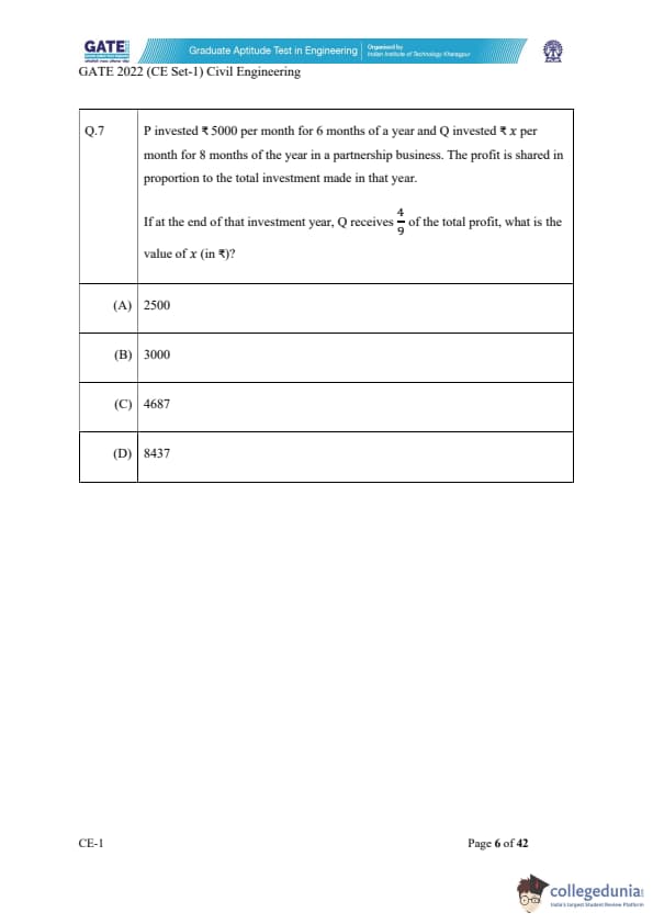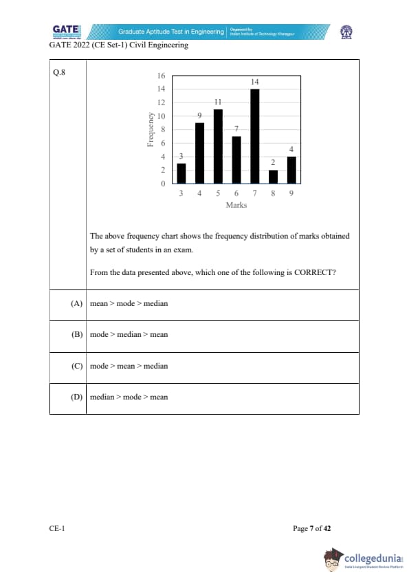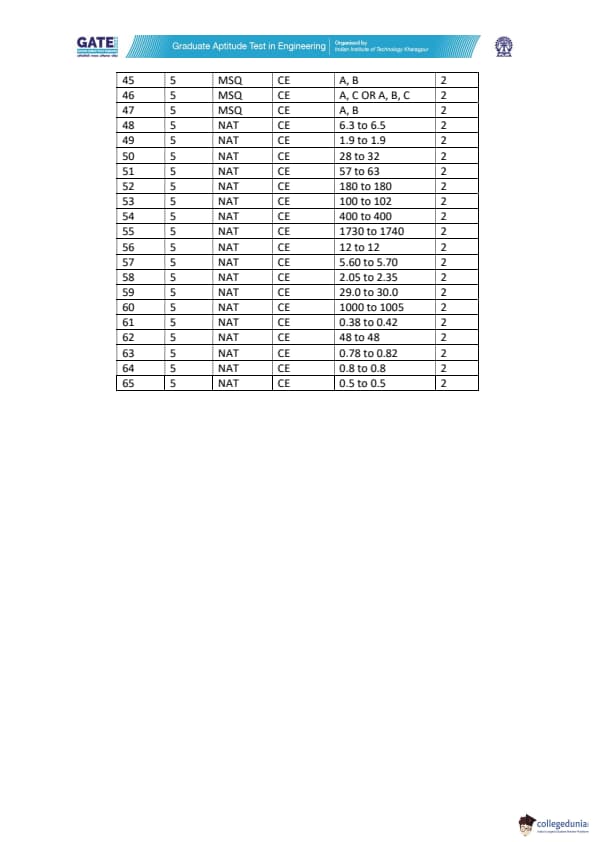 GATE 2022 CE question paper for slot 1 carried 35 MCQs (Multiple Choice Questions), 23 NATs (Numerical Answer Type), and 7 MSQs (Multiple Select Questions). All the questions carried either 1 or 2 marks.