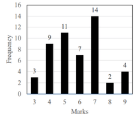 The above frequency chart shows the frequency distribution of marks obtained by a set of students in an exam.