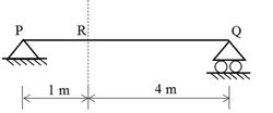 Consider a simply supported beam PQ as shown in the figure. A truck having 100 kN on the front axle and 200 kN on the rear axle, moves from left to right. The spacing between the axles is 3 m. The maximum bending moment at point R is ________ kNm. (in integer)