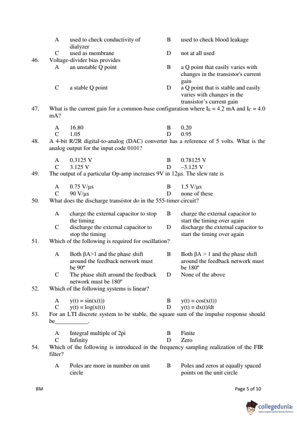 Gujarat PGECET 2018 BIOMEDICAL ENGINEERING (BM) Question Paper with Answer Key PDFs