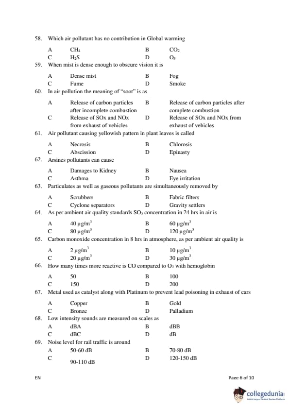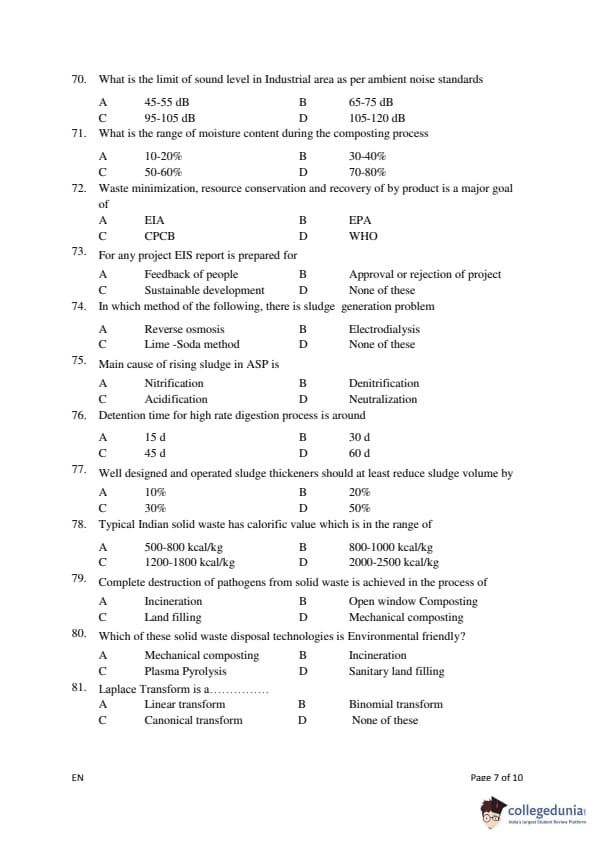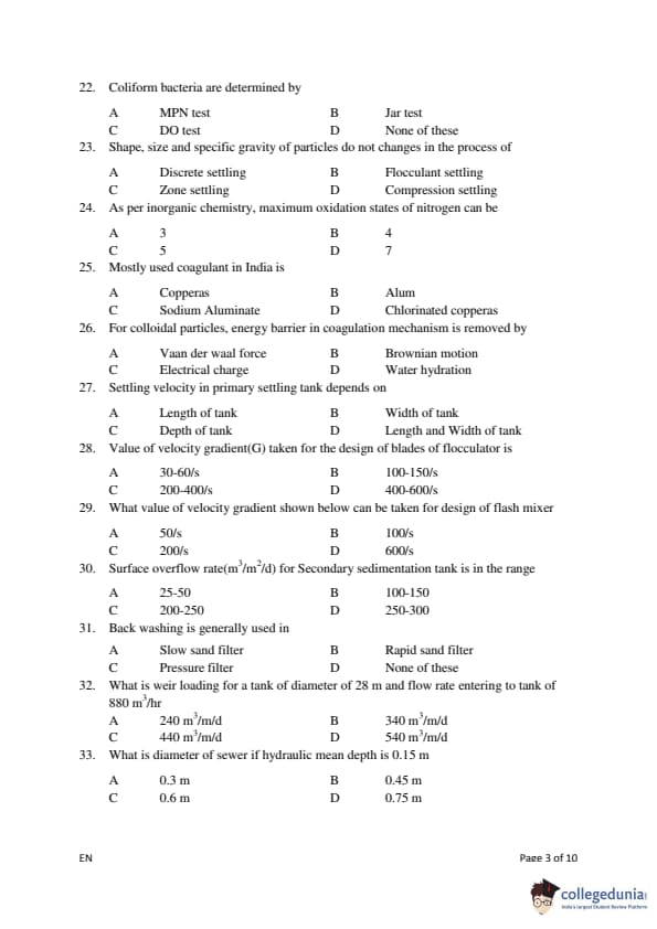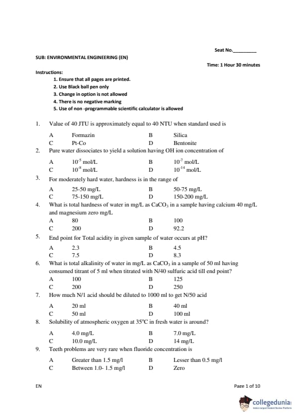 Gujarat PGECET 2018 ENVIRONMENTAL ENGINEERING (EN) Question paper with answer key pdf conducted on July 14, 2018 is available for download. The exam was successfully organized by Admission Committee for Professional Courses (ACPC). The question paper comprised a total of 100 questions.