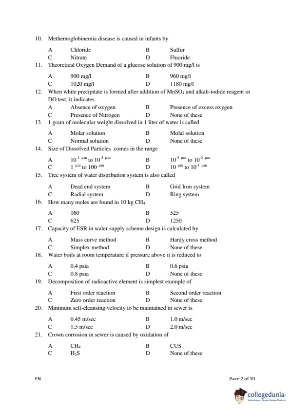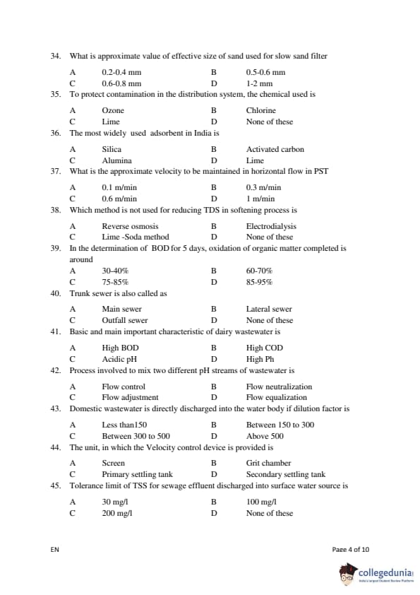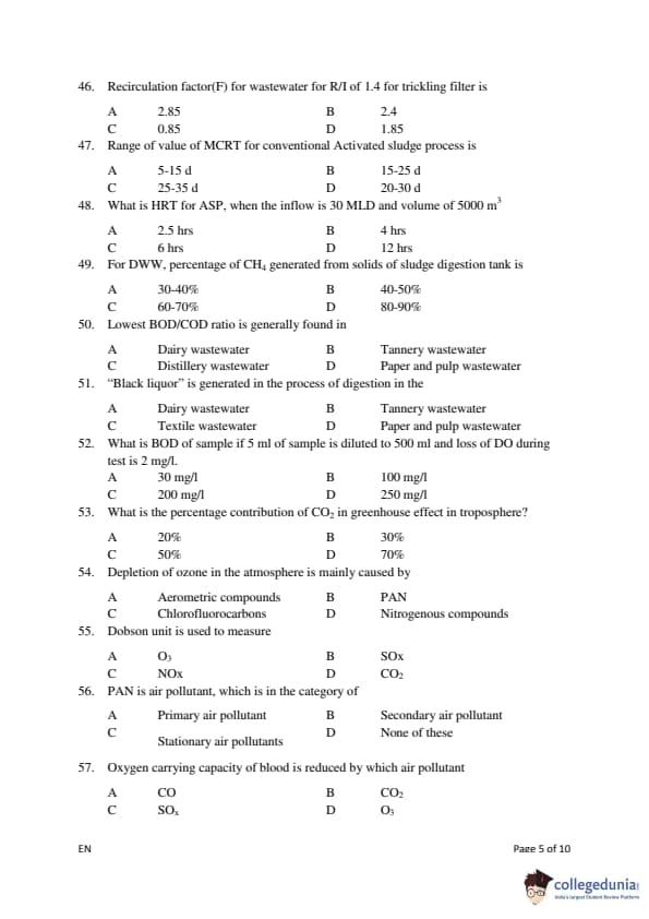 Gujarat PGECET 2018 ENVIRONMENTAL ENGINEERING (EN) Question Paper with Answer Key PDFs
