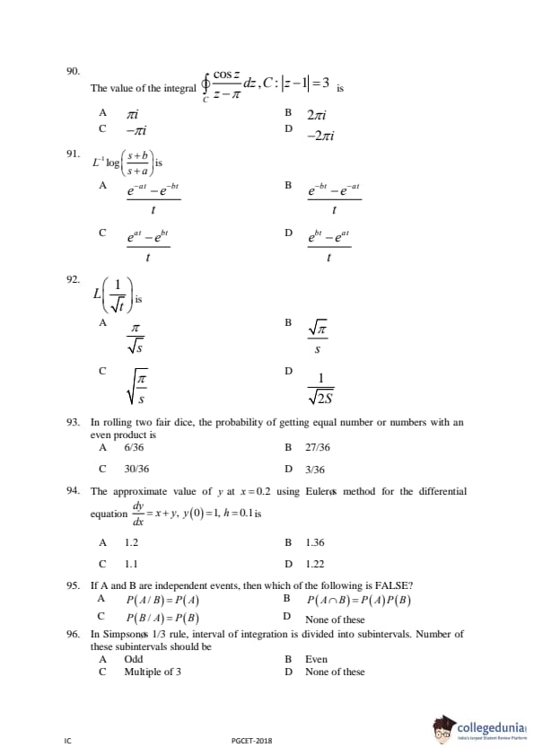 Gujarat PGECET 2018 IC Question Paper PDF Gujarat PGECET 2018 IC Answer Key PDF