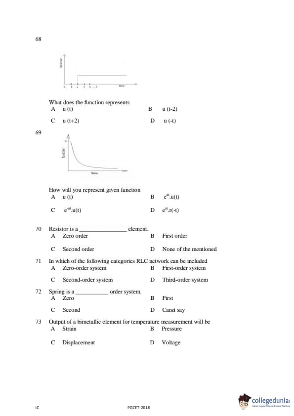 Gujarat PGECET 2018 INSTRUMENTATION & CONTROL ENGINEERING (IC) Question Paper with Answer Key PDFs