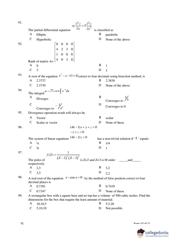Gujarat PGECET 2018 TE Question Paper PDF Gujarat PGECET 2018 TE Answer Key PDF