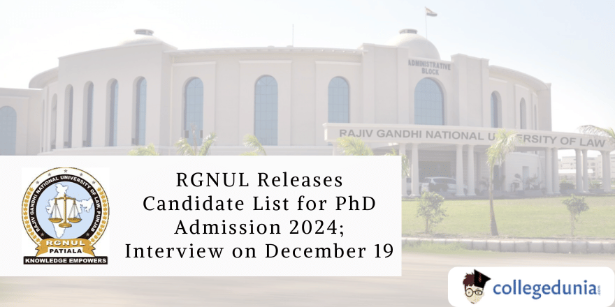 Rajiv Gandhi National University of Law has released the list of candidates for admission to its PhD program 2024. All the qualified PhD entrance exam candidates are requested to submit a research proposal by December 17, 2024. The offline interview is scheduled for December 19, 2024 from 10:00 am.