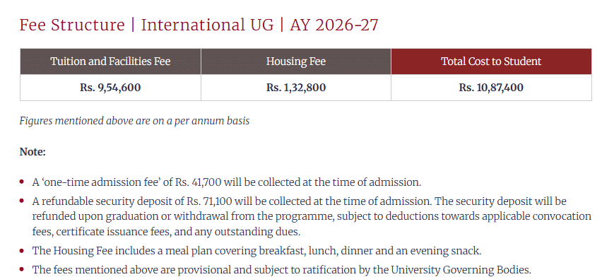 Earlier, BALLB {Hons.} fees at NLSIU was ₹ 16.39 Lakhs (in 2025) for the entire course duration. This shows a fee increase of ₹ 6.54 Lakhs over the year.