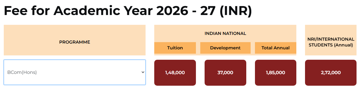 Internships come with stipends of around Rs 2,000, facilitated by the college. Scholarships are available based on academic performance and parental income, ranging from Rs 15,000 to Rs 55,000, with one example scholarship of Rs 48,000 in the first year. The annual tuition fee is Rs 150,000, increasing by Rs 2,500 each year, with a 30% discount for students achieving 90% in school exams or a 9.0 CGPA. B.Com (Hons.) shares the same annual fee. Additional scholarships are available for students scoring over 95% in 12th exams.