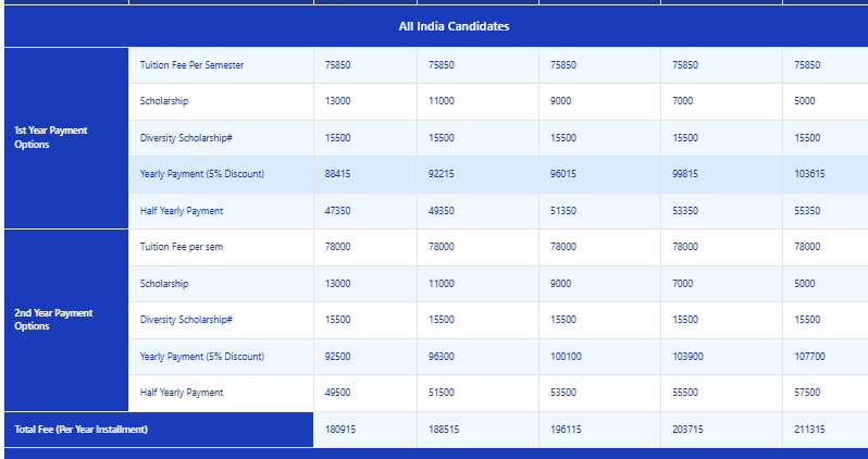 - Candidates need to pay ₹ 1.79 Lakhs in the first year.