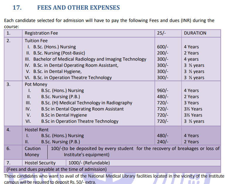 | AIIMS Delhi | ₹ 6,640 |